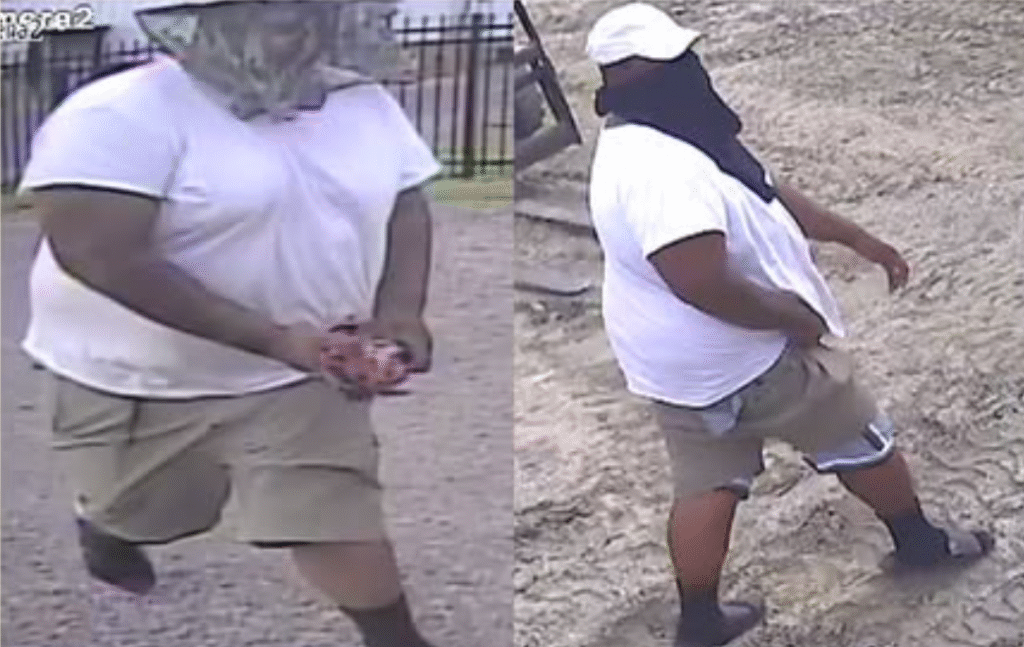 The suspect was captured on camera wearing a white shirt and shorts. The images show him near a fenced area, possibly during the crime.Authorities are asking anyone with information to contact Detective Hernandez. You can view his photographs below.