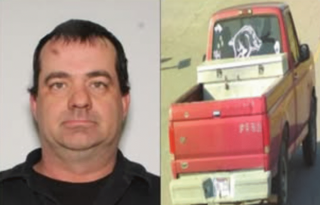 He was last seen driving a red 1995 Ford F-150 pickup truck with AR license plate 686ZCU. The truck features distinctive bullet hole stickers and a Razorback decal on the back window.