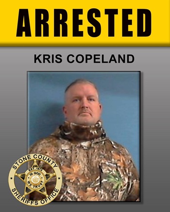 The Stone County Sheriff’s Office arrested Kris Aaron Copeland, 47, of Mountain View, following a child sexual exploitation investigation.