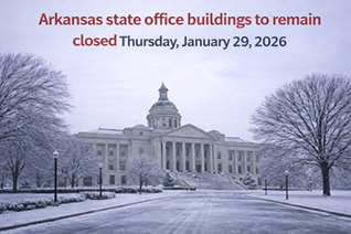 Due to dangerous road conditions caused by an ongoing winter storm, Governor Sarah Huckabee Sanders has ordered the closure of state office buildings except for critical operations on Thursday, January 29, 2026.