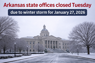 Due to continued hazardous road conditions from this weekend’s winter storm, Governor Sarah Huckabee Sanders has ordered all Arkansas state office buildings closed Tuesday, January 27, 2026, except for critical operations.