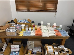 During the operation, law enforcement officers recovered significant amounts of prescription drugs along with suspected counterfeit fentanyl pills. Officials say the scale of the seizure represents one of the largest drug recoveries in the county in recent years.