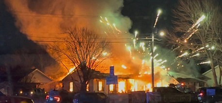 Fire officials reported that fireworks going off in the area hindered suppression efforts during the incident. Two photos documenting the fireworks activity were provided by a social media follower.