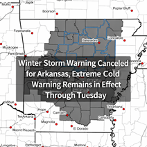 Winter Storm Warning Canceled for Arkansas, Extreme Cold Warning Remains in Effect Through Tuesday
