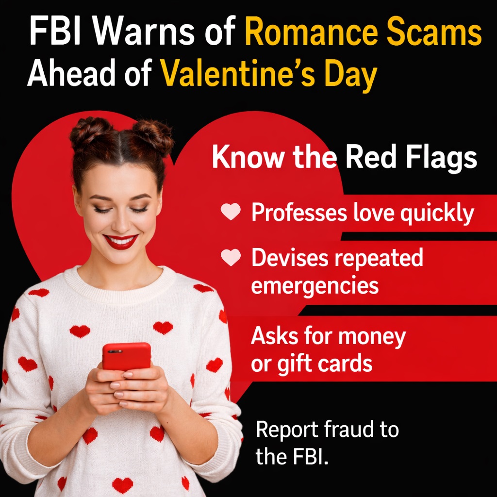 With Valentine’s Day approaching, the Federal Bureau of Investigation is warning Americans to watch for online romance scams, where criminals create fake identities to build emotional relationships and then steal money or personal information.