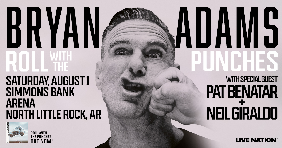 Rock legend Bryan Adams is bringing his Roll With The Punches Tour to Simmons Bank Arena in North Little Rock on August 1, 2026 at 7:30 p.m.