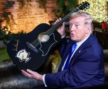 Trump signed a replica of one of Elvis Presley’s guitars and shared that “Hurt” is one of his favorite songs by the King of Rock ‘n’ Roll. He also reflected on never meeting Elvis, calling himself a longtime fan.