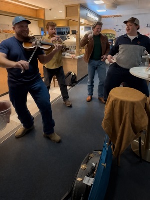 Videos shared on social media show the group laughing, playing fiddle, and interacting with the crowd, capturing what many called a “once in a lifetime airport concert.”