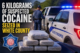 Arkansas State Police (ASP) Troopers seized approximately 6 kilograms of suspected cocaine during a traffic stop Sunday morning on Interstate 57 in White County.