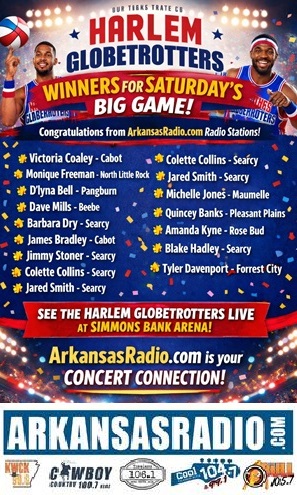 ArkansasRadio.com Radio Stations have announced the lucky winners of tickets to see the world-famous Harlem Globetrotters live this Saturday at Simmons Bank Arena.