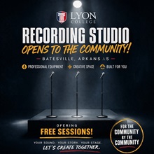 To celebrate the studio’s availability to the public, Lyon College is offering free recording sessions to the first 5 groups that reserve a time slot.