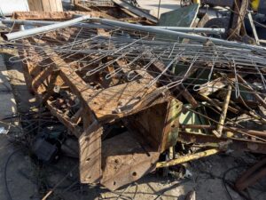 Accepted items include regular tires, appliances, scrap metal, furniture, and bagged trash. Items not accepted include electronics, chemicals, batteries, concrete, and liquid paint.