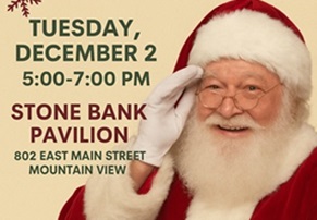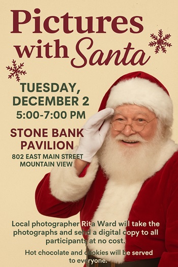 Stone Bank in Mountain View will once again host its annual “Pictures with Santa” event on Tuesday, December 2, from 5 to 7 p.m. at the Stone Bank Pavilion, located at 802 East Main Street.