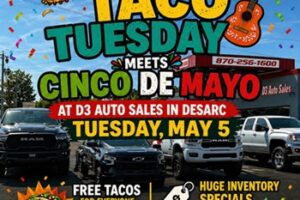A festive community celebration is planned in Prairie County as D3 Auto Sales hosts a special Taco Tuesday meets Cinco De Mayo event on Tuesday, May 5, 2026. The event will feature free tacos for…