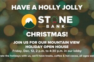 Stone Bank in Mountain View is inviting the community to its Holiday Open House on Friday, December 12, from 2 p.m. to 4:30 p.m. The event is open to the public and will feature holiday…